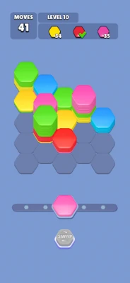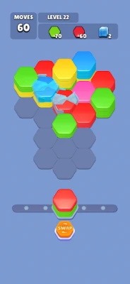 But here’s the twist—you can switch the order of stacked hexes! Use this unique mechanic to set up powerful combos, clear obstacles, and create massive chain reactions. As you progress, new challenges like blockers, limited moves, and special power-ups will test your puzzle-solving skills.