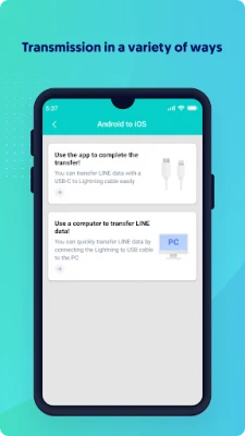 Quickly and easily transfer LINE data from Android to iPhone by using the new USB-C to Lightning cable or connecting an OTG adapter to the old Lightning to USB cable.