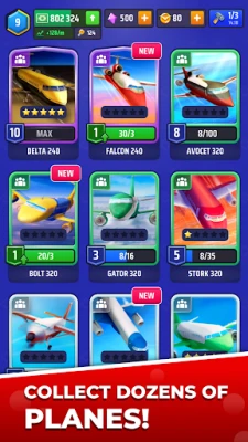 Unlock and collect iconic airplanes by completing the exciting challenges of Idle Airplane Tycoon!