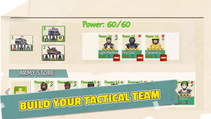 The scene of the game is a world has ended... not dead ahead or dead astern, you are in a zombie warfare. Not a Tower Defense but you also have a Defense Zone. Build a strong team according to your strategy, gather a lot of materials to crafting traps, set traps to stop zombies. Fight to defend your city and explore new areas.