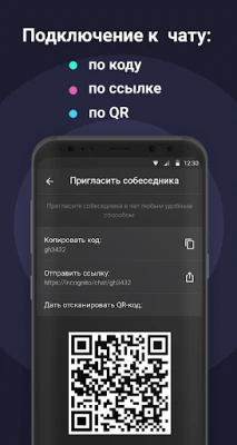 Инкогнито приват мессенджер - первый в мире мессенджер без идентификации пользователя. Приложение позволяет общаться без отправки смс для подтверждения вашего номера и сканирование списка номеров телефонной книги. Просто создайте чат и пригласите одного или несколько собеседников. Подключиться к чату возможно по ссылке, по коду или отсканировав QR код.