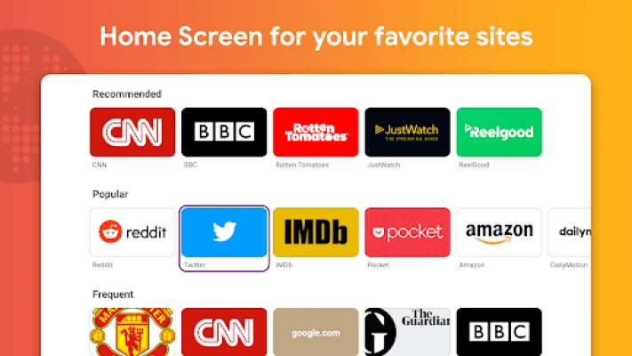 The Web Browser Home Screen keeps the sites you love close at hand. Add your favorites directly to the Home Screen with a click, go directly to recent and frequently visited pages.