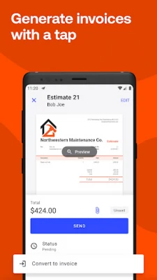 Make business invoices and estimates on the go to get paid faster using one simple app. Send billing receipts and accept online payments from credit cards, PayPal, & Google Pay on all invoices. Billing your clients has never been easier!
