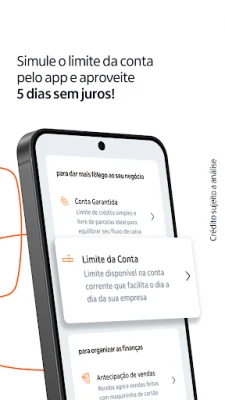 No app você encontra mais informações sobre as soluções de Capital de Giro, Antecipação de Recebíveis, pagamento de salários, consórcio empresarial, limite da conta, antecipação de recebíveis, crédito empresarial, conta PJ, investimentos para empresas, cartão empresarial e laranjinha, a maquininha do Itaú com tecnologia Rede.