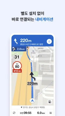 No need to install a separate navigation app. When you search for a route, KakaoMap will give you navigation directions right away.
