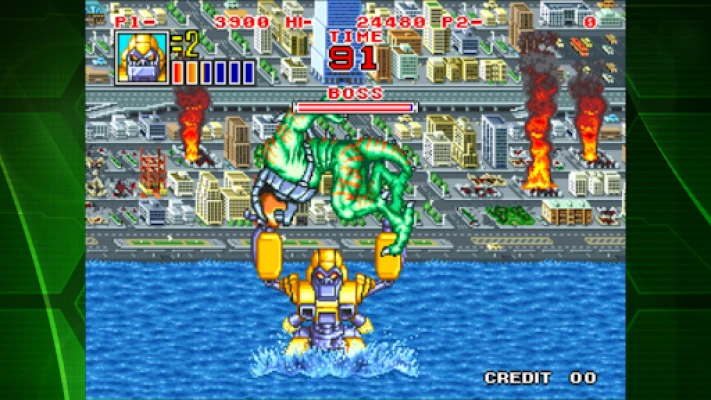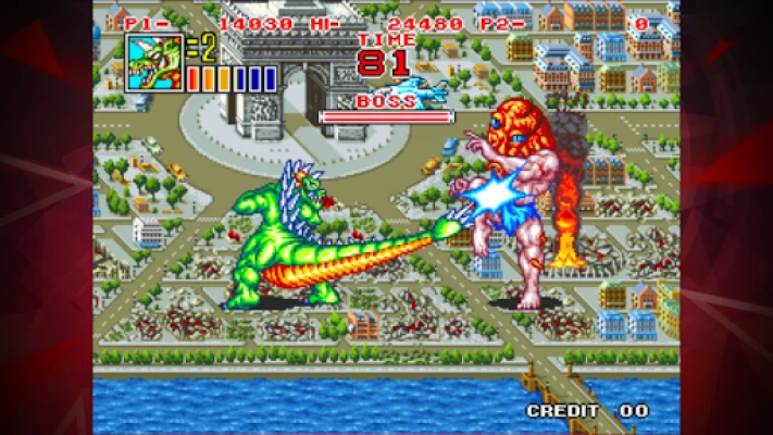 [Game introduction] KING OF THE MONSTERS 2 is an action game released by SNK in 1992. Choose 1 of 3 monsters to thrash aliens around the world and become the undisputed King of the Monsters! Work together in a 2 player co-op mode, or duke it out in versus mode!