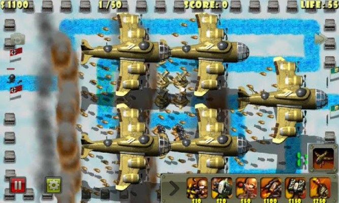 There are 6 different types of upgradable turrets available in the game; you should arrange them wisely on the enemies’ pathway to block them.