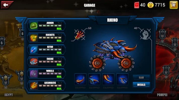 Mad Truck Challenge includes 72+ levels of various missions, where the battle of cars against different bosses takes place! You’ll drive around 6 uphill locations, where your opponents are fantastic creatures: pharaohs in ancient Egypt, devils in Pompeii, Vikings in winter land, vampires in Transylvania, aliens in Nemesis, and zombies in the Necropolis! Race simulator game!