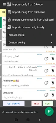 MahsaNG operates in conjunction with third-party VPN configurations generously contributed to us via "Mahsa Server." These configurations are then distributed intelligently among our users.