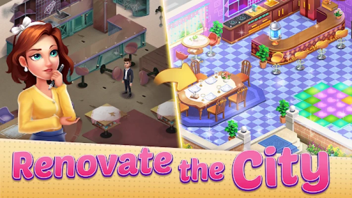 Merge 2 similar items to help restore the piece, fix the broken things and clean up the stores and buildings, and choose the designs that match your style. Use the required items to complete the tasks and collect coins and stars to unlock new designs.