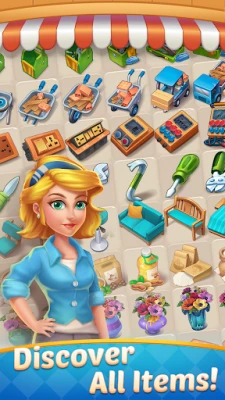 Merge and collect tools that've been hidden in the city by expanding the town. Use them to repair the stores, restaurants, houses, or sell extra items to make sure every shop has a glamorous look!