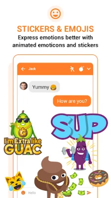 - Express your emotions using trendy Emoji - Send messages with awesome Stickers - Enjoy animated emojis for better chatting