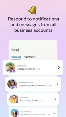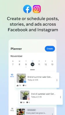 Use this app to: • Create, schedule, and manage posts and stories across your Facebook Page and Instagram account • Connect with more customers by responding to all of your messages and comments in one place—you can even automate responses to save time • View insights about how people are interacting with your posts, stories and ads so you can create content that resonates with them • View your notifications and to-do list so you can stay on top of what matters most