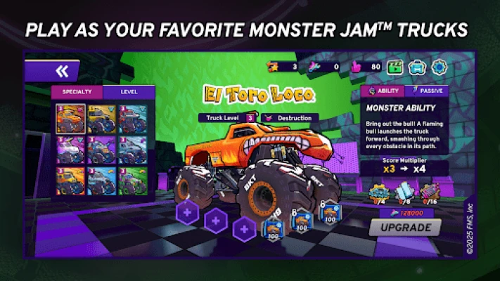 Tune and upgrade your trucks to take on the toughest challenges. Customize your monster trucks with new parts to boost speed, handling, and durability. Build the ultimate Monster Jam truck to dominate the Monster Jam arena!