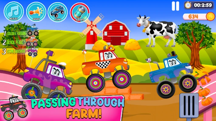 Get ready for unlimited fun and exciting challenges in this stunt driving games for 5 years old. Downhills race stunts and up climb master trucks are waiting for you in this bike rush games for preschoolers “Monster Trucks Stunt Race Game”.