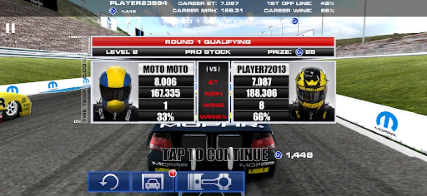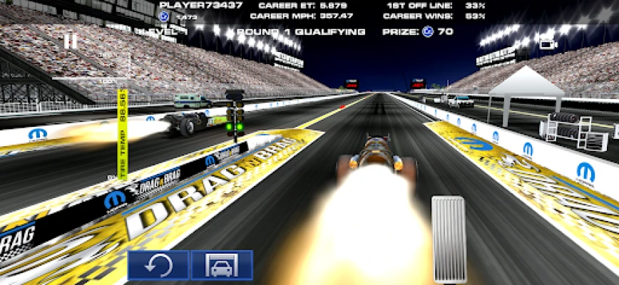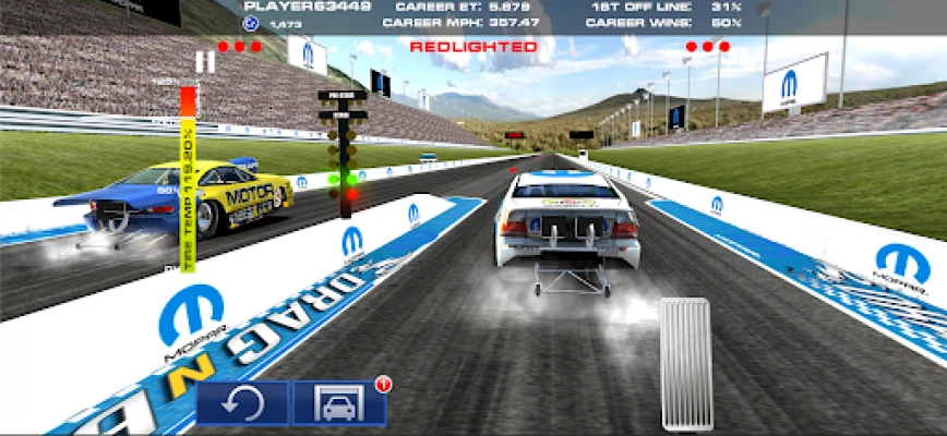 • PRE-STAGE BURNOUTS. Before each pass drivers are allowed to perform a burnout which cleans and heats your Mopar’s tires for improved traction. Watch the temp bar on the left but be careful, too much throttle will overheat the tires and reduce grip.