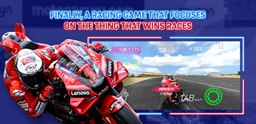 MotoGP 2023 Season Edition. Finally, a motorcycle racing game that keeps you on the track and focused on what wins races, TIMING! Timing on the brakes and timing on the throttle. Experience the intense racing action that is MotoGP. Race as your favorite rider and join them on the podium of the Fan World Championship, or customize your own bike and challenge your friends with the highest scores.