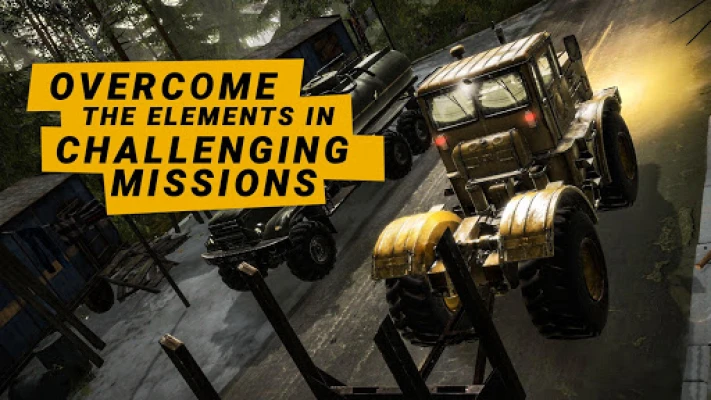 Complete your objectives and deliveries by enduring perilous conditions across wild, untamed landscapes in extreme conditions with dynamic day-night cycles. Overcome muddy terrain, raging rivers and other obstacles that all realistically react to the weight and movement of your vehicle powered by the game's advanced physics engine.
