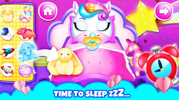 - Your unique unicorn needs to SLEEP & GO TO THE BATHROOM. Play the lullaby before the unicorn falls asleep. Pick up the cutest toy for Kimi to hold. And Kimi will dream about the favorite toy. Teach Kimi to go to the bathroom in the right moves, especially washing hands.