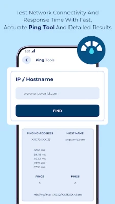 Many a times we face low network connectivity or low internet speed. With the help of Network tools app you can get all all information regarding network like - WiFi name, external IP, Mac address Ping data, DNS server & more.