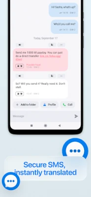 You also can use NumBuster app as a default SMS app in your smartphone (you may choose this option in SMS section of the app at any time) that sends and receives SMS and permanently protects you from SMS spam and fraud.