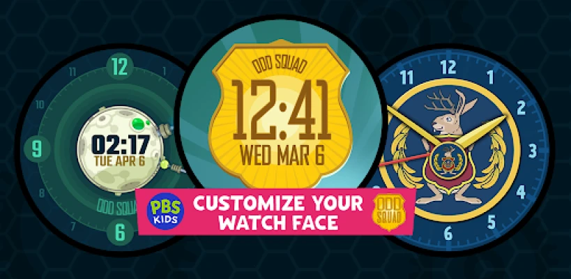 Your child can upgrade and enhance their watch experience with this fun Odd Squad watch face design from PBS KIDS! Look for the two other Odd Squad watch face designs with the Odd Squad team’s Gadget and Badge. Download the Odd Squad Seal Watch Face now from PBS KIDS and give your child the ability to personalize their Wear OS experience.