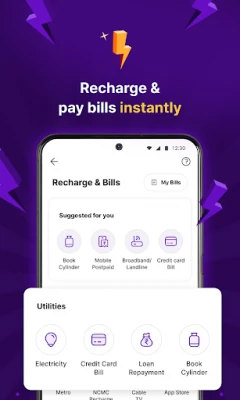 PhonePe is a payments app that allows you to use BHIM UPI, your credit card & debit card or wallet to recharge your mobile phone, pay all your utility bills and to make instant payments at your favourite offline & online stores. You can also invest in mutual funds & buy insurance plans on PhonePe. Get Car & Bike Insurance on our app.