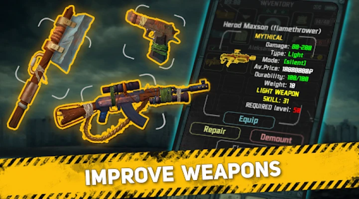 ☢ Over 100 different types of weapons, armor, helmets, backpacks, and costumes, including legendary and mythical items help in a standoff with enemies!
