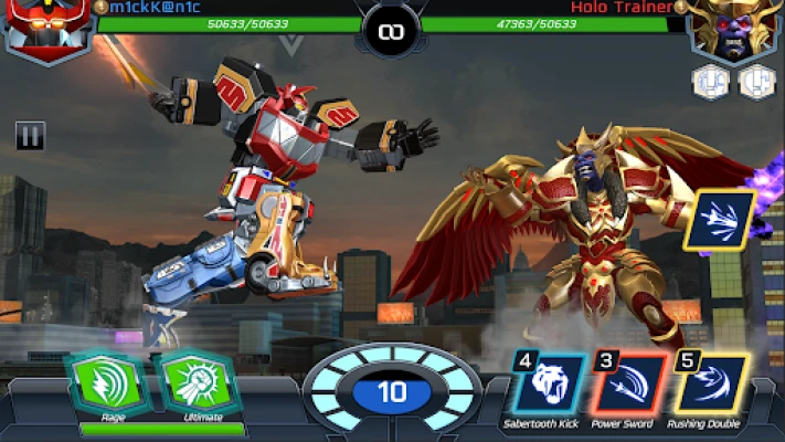 Battle and brawl with giant Megazords, including Dino Megazord, Mega Goldar, Predazord, Thunder Megazord and more. Customize your Megazord with Mega Attacks. Equip over 12 Mega Abilities to help destroy your opponent. Take your Megazords and join in on the Megazord Alliance Wars where you will battle against other Alliances to lead your Alliance to glory.