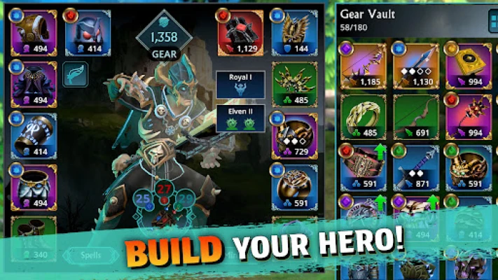 - Equip your heroes with unique and powerful spells and use elements to your advantage.