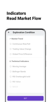 Customize your search with filters like time intervals, volume, price changes, and technical indicators to explore Bitcoin and altcoins from exchanges like Binance and Upbit.