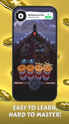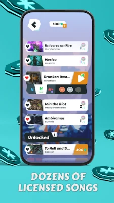 🎵 Dozens of licensed songs 🥁 3 difficulty levels for every track 🏅 Unlock new songs by playing 👑 Get on top of the leaderboards (requires login) 🚀 Quick 2-minute sessions, perfect for on-the-go play ⚙️ Calibration tool & replayable tutorial anytime