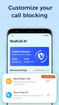As the most popular spam call blocker, RealCall employs AI and machine learning solutions to prevent you from being targeted by scammers. It has analyzed millions of callers and stopped 99% of spam calls for its users.