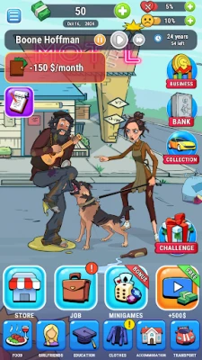 Finish college and start your career from the street hustle beggar. Upgrade your level of knowledge. Select from different courses from a sales manager to law courses. Do anything, to get a faster promotion. Money simulator game is waiting for you! Build your business empire!
