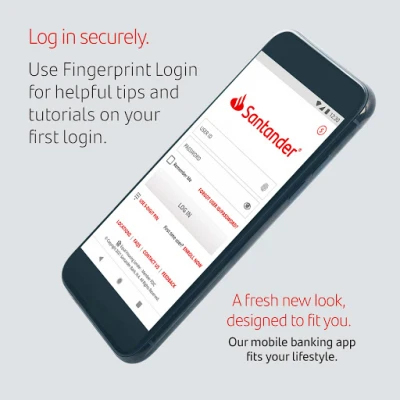 • Log in using your fingerprint. (If you share your device with other individuals, please note any fingerprints stored on your device may be used to log in to the Santander Mobile Banking App and access your account.)