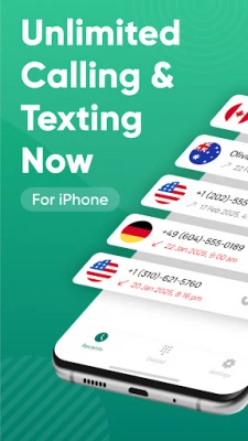 • Instant Second Phone Number: Create your own 2nd line within seconds. Choose from multiple area codes across the USA, Canada, UK, and more.