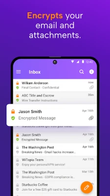 The SecureMyEmail™ secure email app for Android provides easy PGP email encryption for any email address so everyone can enjoy the privacy of end-to-end encryption without having to switch their email provider.
