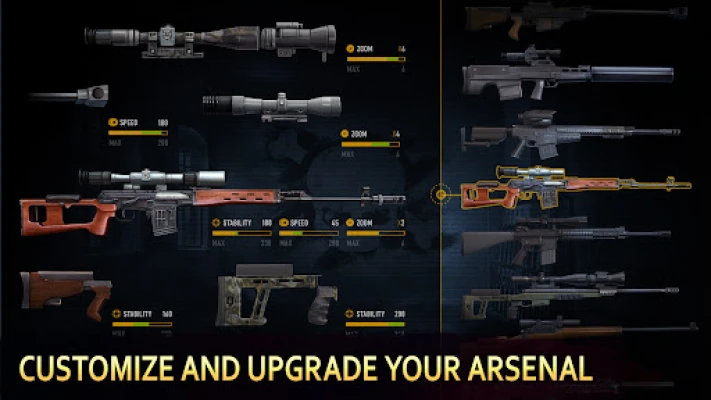 • Develop your SNIPER CAREER, from recruit all the way to the rank of Terrible Judge, with a variety of daily tasks and a detailed ranking system. Unlock and upgrade modern PROFESSIONAL EQUIPMENT: sniper rifles, ammunition, camouflage and special equipment.