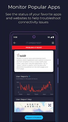 With 55 billion tests and counting, our speed test is the go-to solution to wifi testing, cell measurement, and internet performance analysis Speedtest around the world. Now we feature Downdetector in the app so you can see real-time status updates on your favorite online apps and services. Use it to track your favorite services and report problems to stay informed.