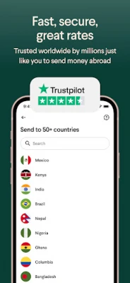Transfer money to 50+ countries including: