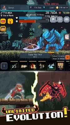 Journey into the vast world where you'll explore and battle through forests, abandoned cities, snowy fields, underground mines, and demonic fortresses rendered in captivating pixel art graphics.