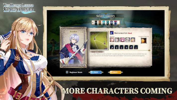 You will enter a world of Swords & Magic, where there are countries with different characteristics and potential relationships, and you can choose to become the monarch of any country. Through wise management of your own territory, you will grow your economic and military strengths, and eventually conquer other countries and become the overlord of Eagarlnia.
