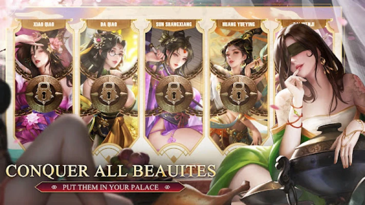 Put enemies' wife into your palace!Forge Intimate Partnerships on a captivating Three Kingdoms adventure where beauty and strategy collide. Discover mesmerizing consorts and cultivate intimate relationships. Together, conquer the realm and bask in the glory of love and victory.