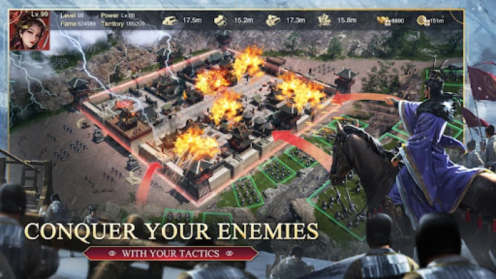 Control the power of weather, master the tactics of terrain.Seize strategic advantages and lead your forces to victory in this immersive battle in the revolutionary SLG Three Kingdoms: Throne.