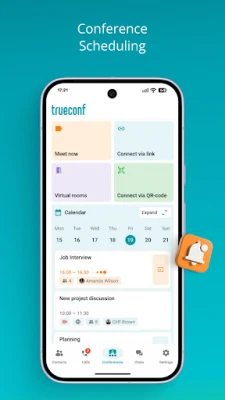 • Meeting scheduling. Schedule conferences and send invitations automatically when connected to TrueConf Server.