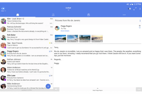 Supporting IMAP, POP3 as well as Exchange protocols. Type App automatically configures them once you sign in. View & sync all your email accounts from one Unified Inbox, while enjoying lightning fast true push email.