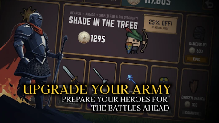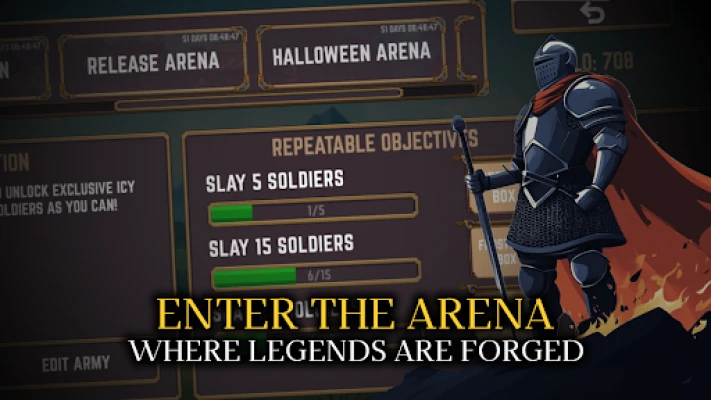 There is no blacksmithing here—you do not craft weapons, you earn them. Gear is acquired from loot chests, milestones, the in-game store, and special objectives. Assign each weapon, armor, and shield to your soldiers and find the setup that fits your tactics. Swap gear freely between matches, experiment with builds, and refine your lineup to perfection. Duplicate items allow multiple soldiers to use the same equipment when you own more than one copy. Testing combinations and learning matchups is how your army evolves from scrappy to superb.