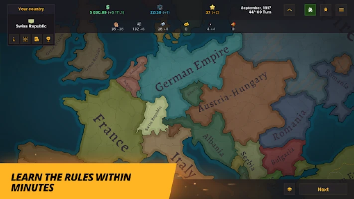 - Choose one of half a dozen political regimes, and make political decisions that might change the course of history