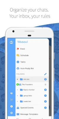 Auto send messages with images, connect your chats to your Google Sheets or cloud, Monitor chat groups for topics and follow specific friends, turn messages into tasks, notes and reminders all from within your favorite social messenger app.