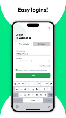 Install the WATI mobile app & enter your login credentials along with the company dashboard domain provided by WATI.